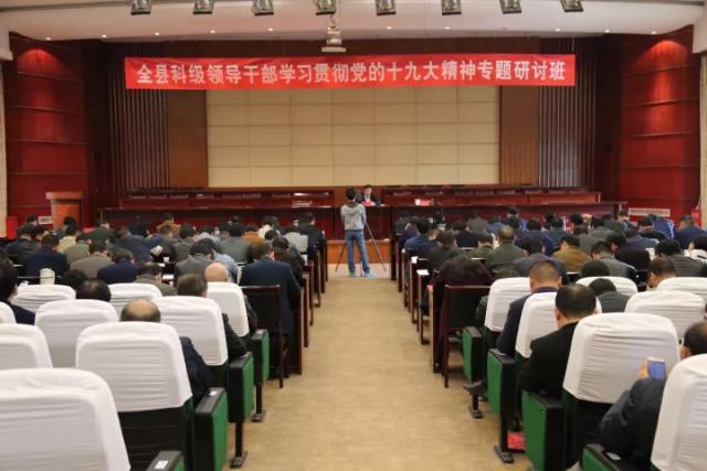 ? 11月30日上午,全县科级领导干部学习贯彻党的十九大精神专题研讨班在文峰宾馆举办,县委书记甘贤武出席开班仪式并作辅导报告。